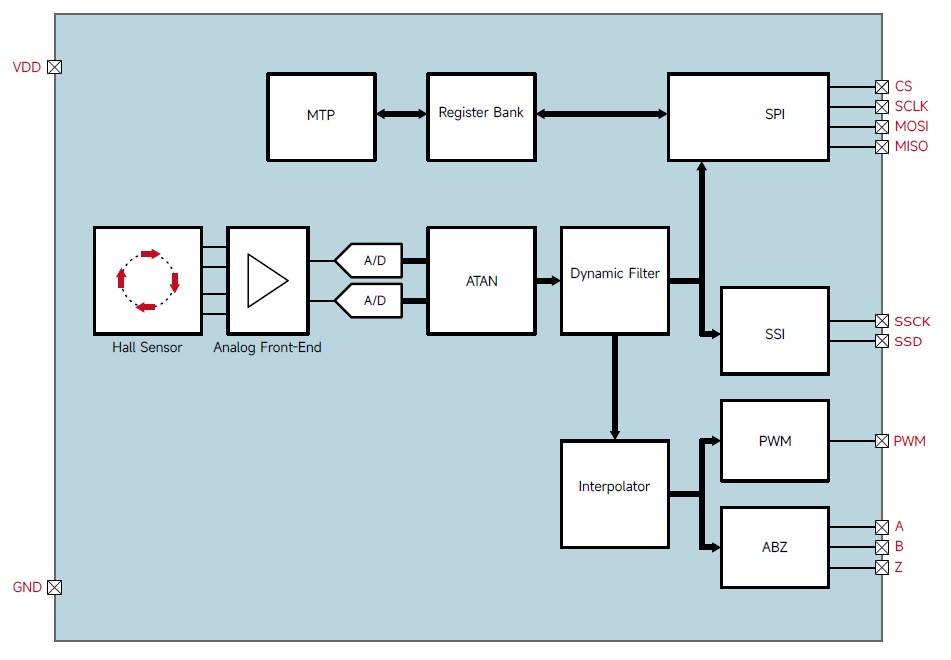 - Mehrfach programmierbarer Speicher (MPT): Kritische Konfigurationsparameter wie Nullwinkelposition, ABZ-Einstellungen und Magnetfeldschwellen können dauerhaft gespeichert werden.