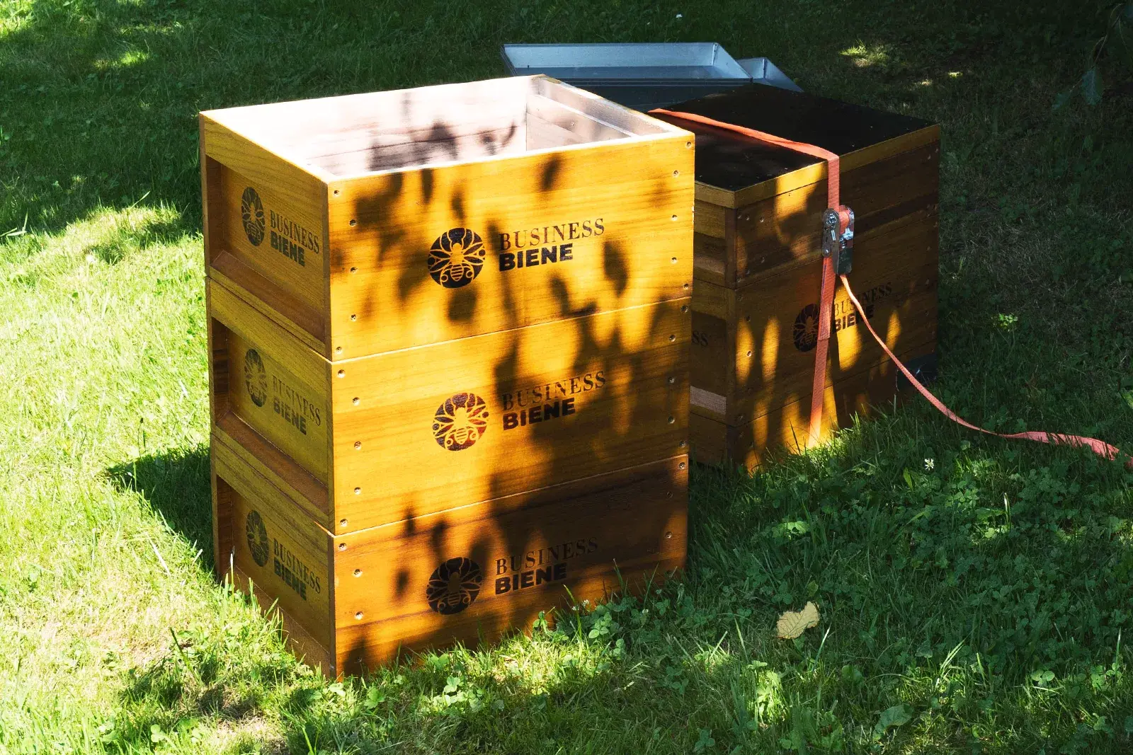 Zusammen mit der BUSINESS BIENE haben wir den optimalen „Arbeitsplatz“ auf unserem Gelände identifiziert und die fünf neuen Unterkünfte bei bestem Sonnenschein aufgestellt. Dabei hat uns Victor Dutenhöfner die Basics im Umgang mit den Bienen erläutert.