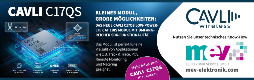 Das C17QS verfügt neben der Mobilfunktechnologie LTE Cat 1bis auch über einen fortschrittlichen GNSS-Chipsatz von Qualcomm für die Bänder L1 und L5. Dieser bietet Unterstützung für GPS, GLONASS, Beidou, NavIC, Galileo, QZSS und SBAS für präzise Positionierung und schnelle Fixzeiten. Der Temperaturbereich ist mit -40°C bis +85°C spezifiziert. Des Weiteren handelt es sich bei C17QS, genau wie beim C16QS, um ein LGA-Modul mit den Maßen 26.5mm x 22.5mm. Beide Module sind pin-kompatibel, sodass bestehende Designs mit dem C16QS leicht auf das C17QS upgegradet werden können. Weitere Features sind die iSIM und die optionale Cavli Hubble Plattform für die Konnektivität sowie umfangreichen Managementfunktionen, um die Mobilfunkmodule auch im Feld einfach zu verwalten.