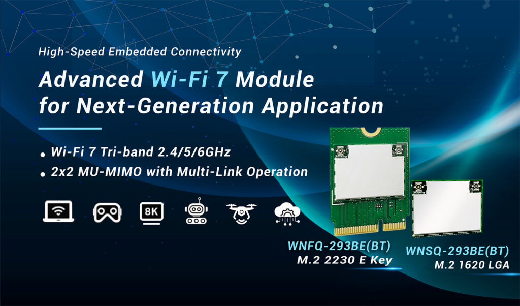Die WNFQ-293BE(BT)- und WNSQ-293BE(BT)-Serien wurden für die nächste Generation von Geräten entwickelt und unterstützen fortschrittliche Wireless-Funktionen wie Multi-Link-Betrieb (MLO), 160 MHz Bandbreite und 4096-QAM-Modulation. Dies ermöglicht eine reibungslose Kommunikation mit geringer Latenz selbst in überlasteten oder unternehmenskritischen Umgebungen. Ob in KI-gesteuerten Controllern, robusten Gateways oder intelligenten Mobilitätsplattformen – die Module bieten die Geschwindigkeit, Zuverlässigkeit und Skalierbarkeit, die für intelligente Edge-Konnektivität erforderlich sind. Die Serien WNFQ-293BE(BT) und WNSQ-293BE(BT) bilden die drahtlose Grundlage für die Zukunft vernetzter Systeme.