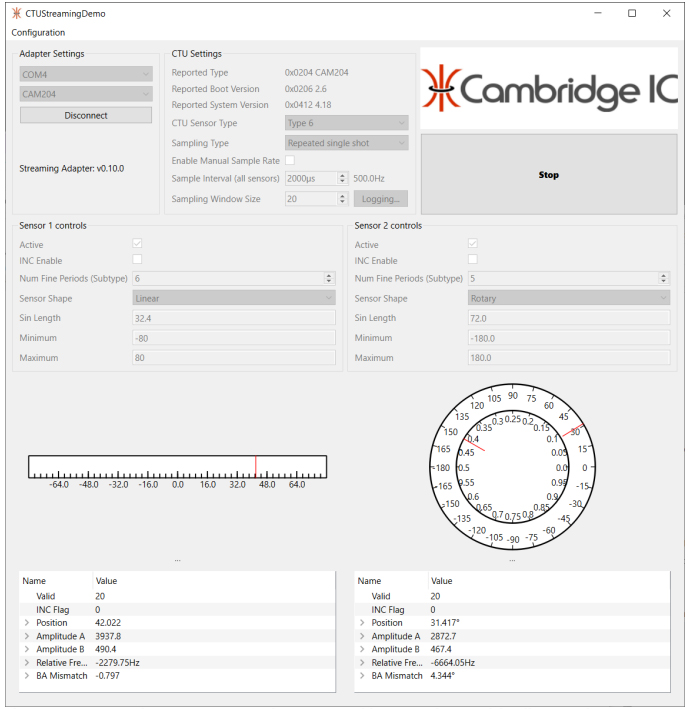 For the evaluation of the resonant inductive sensor technology, Cambridge IC presents the new software CTU Streaming Demo. With the help of the new Streaming Adapter, this accesses the measured values of the CTU ICs CAM204, CAM312 and CAM502.