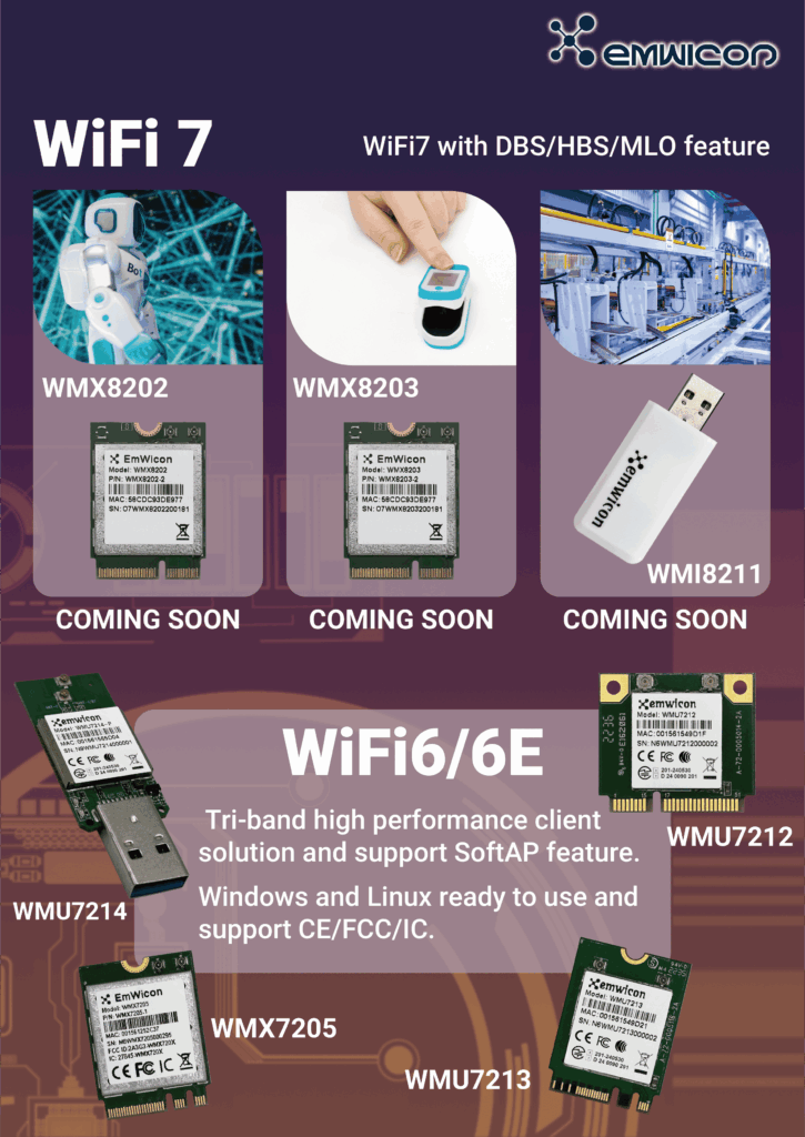 - WMI8211 & WMX8203 – coming soon: Entry Level Client-Module (USB & M.2 2230) mit Bluetooth 5.4 – perfekt für mobile und industrielle Endgeräte.